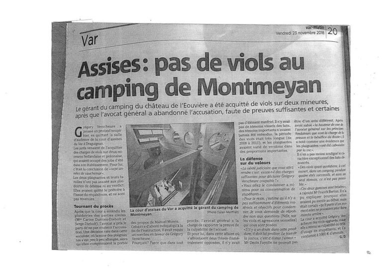 Le gérant du camping du château de l’Eouvière a été acquitté de viols sur deux mineures, après que l’avocat général a abandonné l’accusation, faute de preuves suffisantes et certaines…
