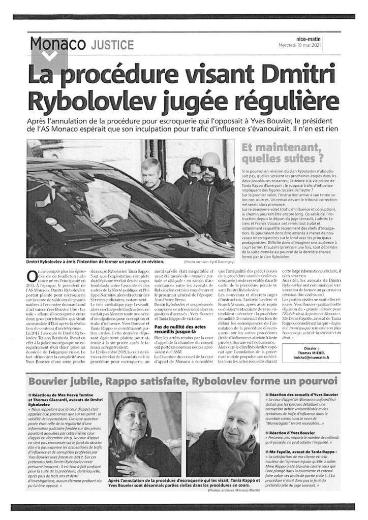 Après l’annulation de la procédure pour escroquerie qui l’opposait à Yves Bouvier, le président de l’AS Monaco espérait que son inculpation pour trafic d’influence s’évanouirait. Il n’en est rien…