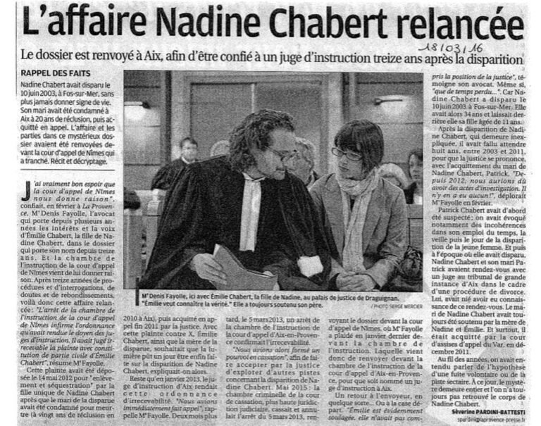 Le dossier est renvoyé à Aix, afin d’être confié à un juge d instruction treize ans après la disparition…
