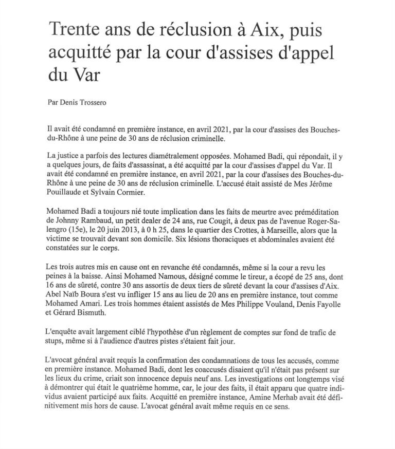 Il avait été condamné en première instance, en avril 2021, par la cour d’assises des Bouches-du-Rhône à une peine de 30 ans de réclusion criminelle.