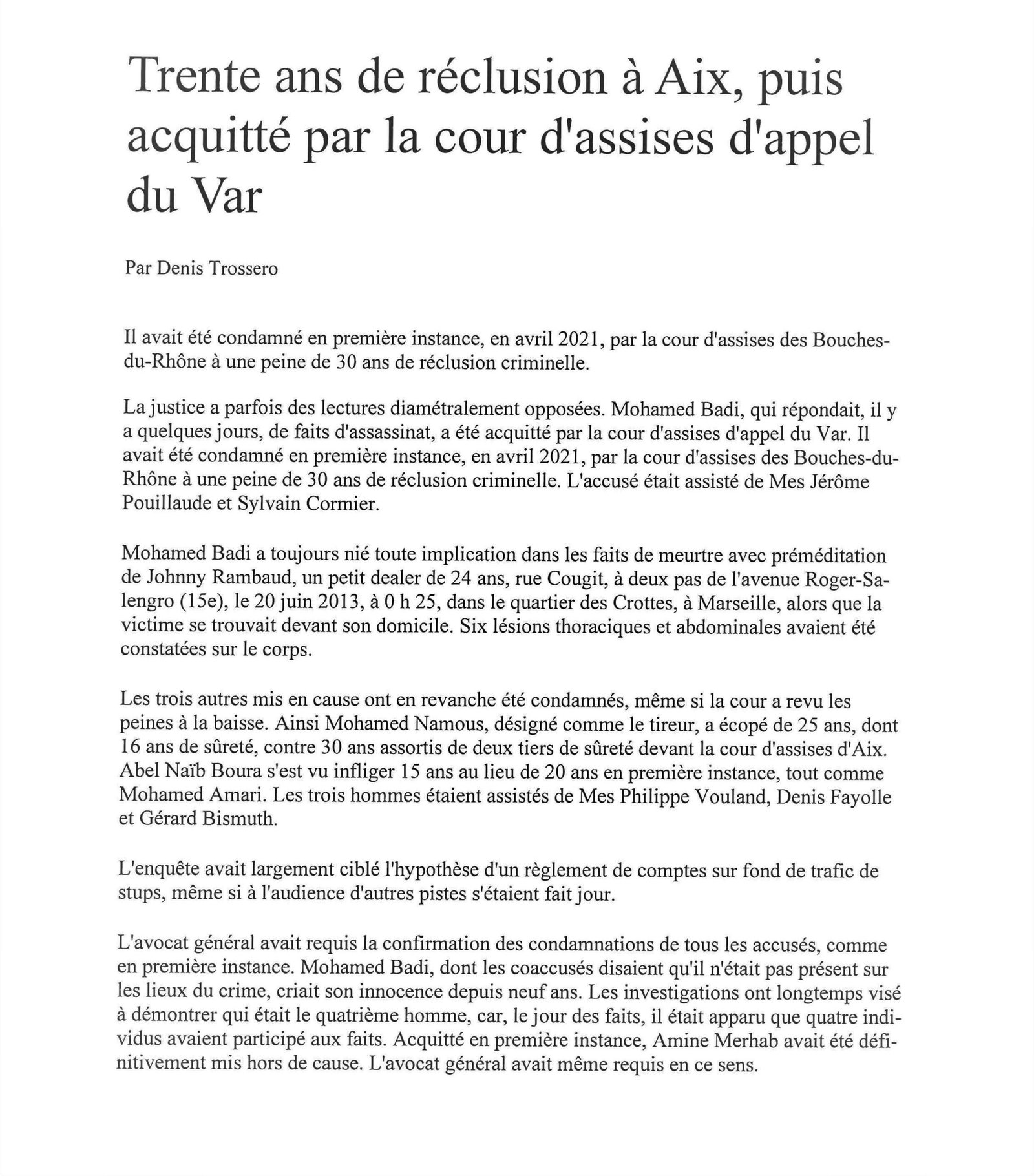 Trente ans de réclusion à Aix, puis acquitté par la cour d’assises d’appel du var